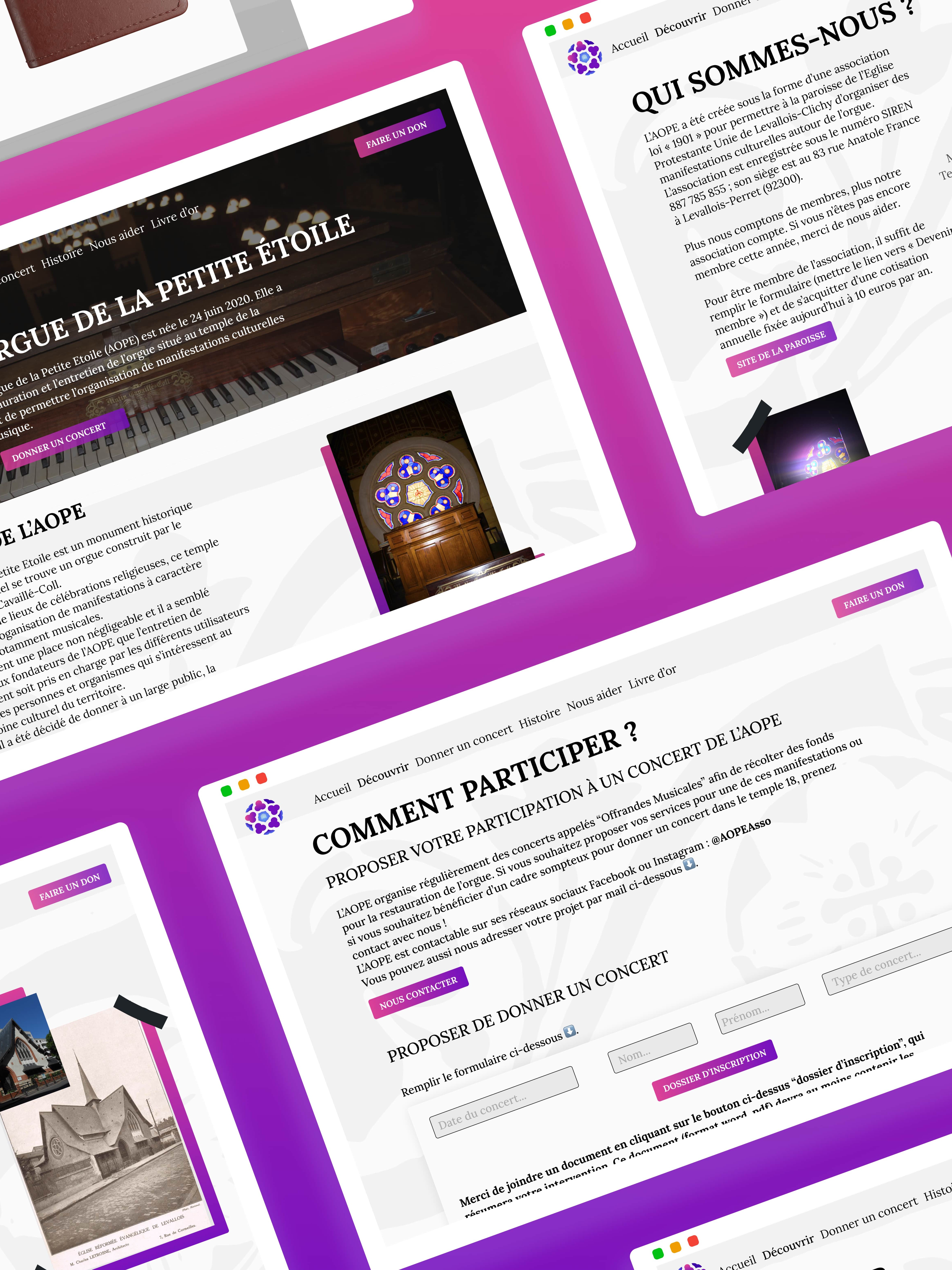I worked on the graphic charter and website development for the ‘Amis de l'orgue de la petite étoile’ association.